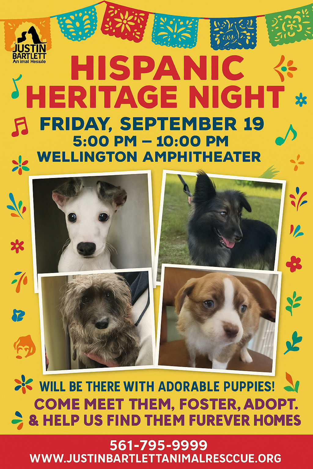 Last night’s Hispanic Heritage Night was everything we hoped it would be—music, food, community, and (of course) puppies! Our Justin Bartlett Animal Rescue team brought a delightful crew of adoptable dogs to soak up the sights, sounds, and snuggles while meeting potential families. From shy cuddle-bugs to playful goofballs, our pups enjoyed an evening of social interactions, new smells, and lots of love.