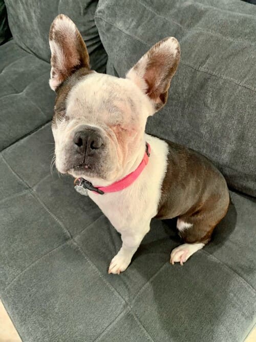 Our rescue stepped in. We opened our arms to nine French Bulldogs that day—nine souls, each carrying scars of mistreatment. Simon’s skin told a painful story of neglect, while his friend Corina, another gentle heart in the group, struggled with painful eye injuries. Each one needed urgent, specialized care, and our veterinary team did not hesitate. With compassion at their core, they provided treatment, soothing their pain, and reassuring them that—for the first time—they were safe.