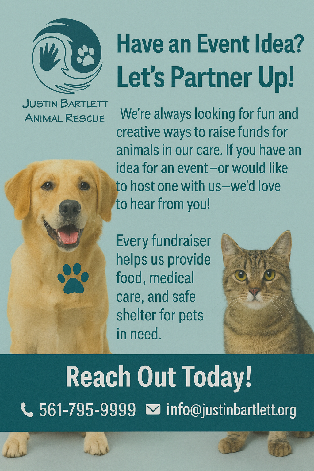 💯 100% of proceeds benefit the pups & kitties of Justin Bartlett Animal Rescue!